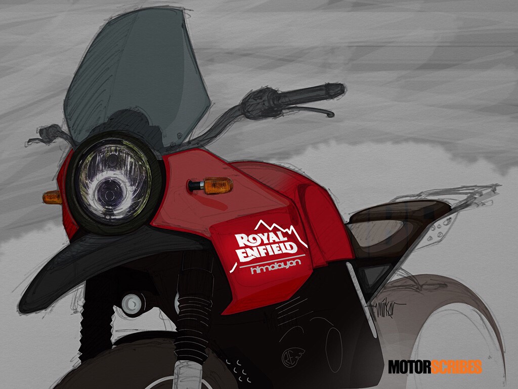 Concept sketch for the Himalayan- note how the fairing integrates the tank with headlamps