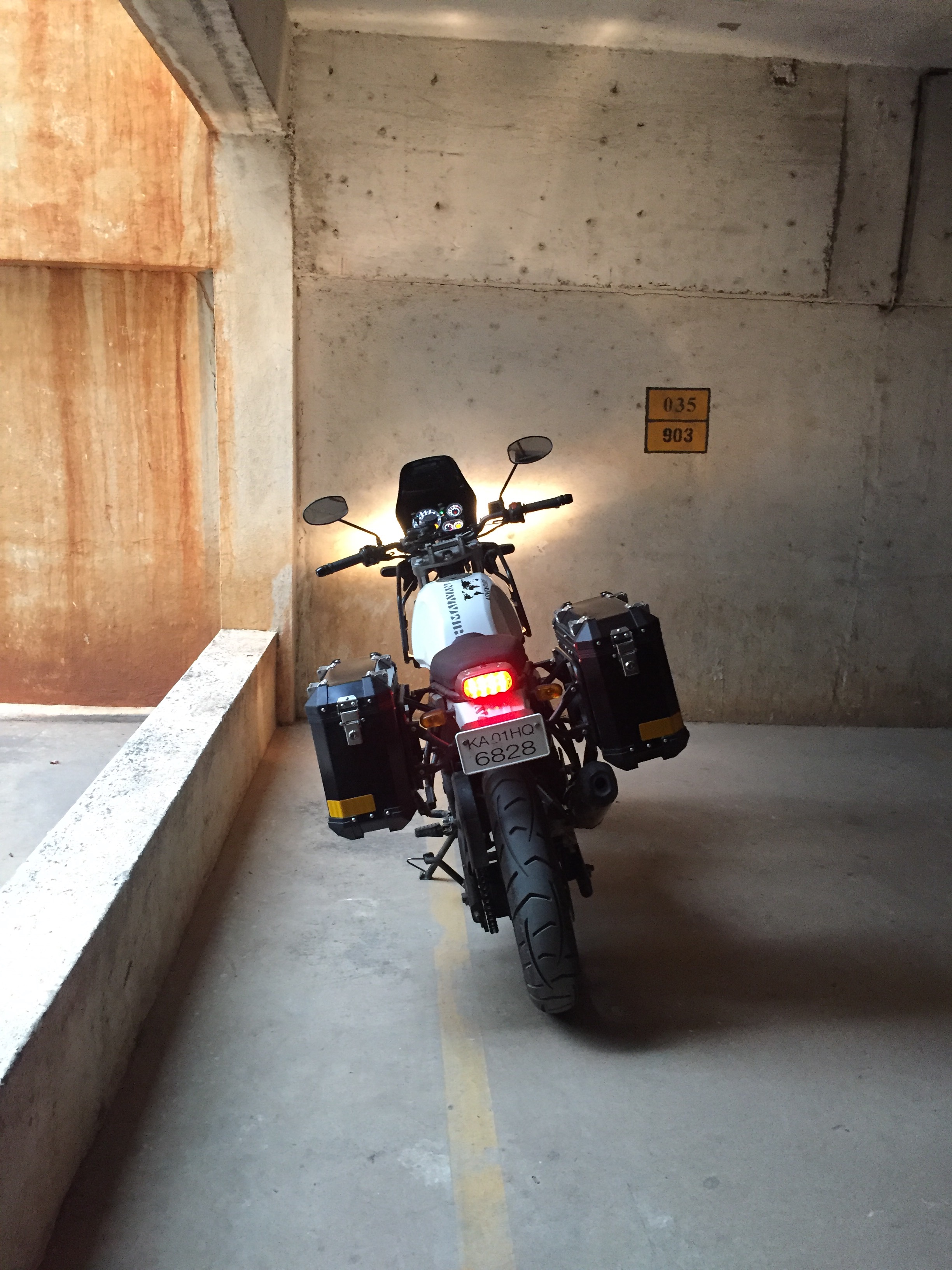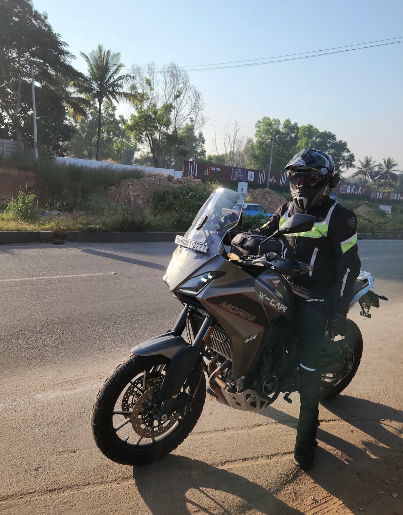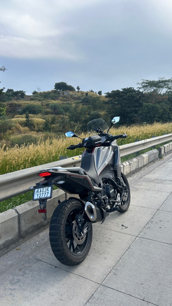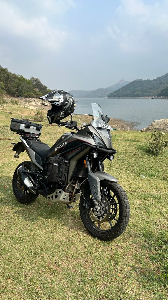 When I purchased the Moto Morini X-Cape 650, I was perhaps blind to this particular aspect of my motorcycle ownership. To my mind, the Italian Adv was already cumbersome at 215 kgs, and I was concerned about tipping it over. On went the assortment of crash guards, including hefty side bars to the fairing. Even though I found these in poor taste, I justified putting these on as a mount for auxiliary lights, and for the rare instance when these would save the fairing from impact. I told myself I needed auxiliary lights to ride in pitch dark (or in rain). A well crafted (read heavy) aluminium top box was of-course essential, to accommodate my laptop bag and other knick-knacks on daily commutes. Now this top box, sat on a fairly robust rear rack with a solid steel plate under-mount. Some flawed logic informed me that heavy adventure motorcycles are well balanced by design to carry top boxes and large aluminium panniers- I should not feel the drag like I used to on the Himalayan.