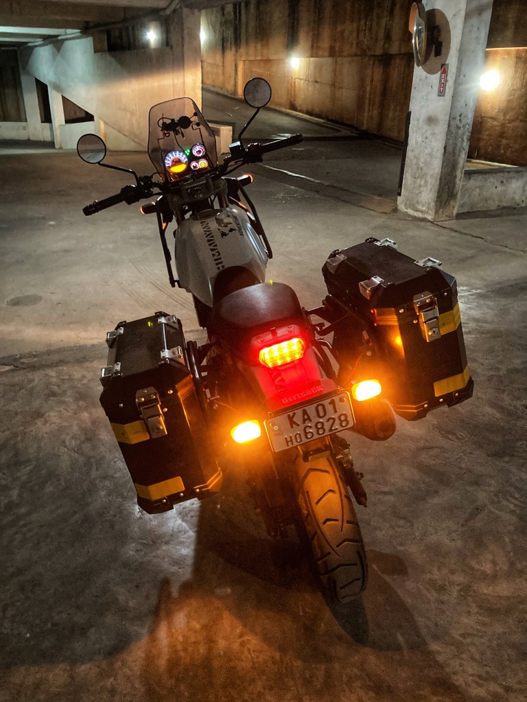 More than 6 months of using the bike in this format, has me convinced otherwise. As the first year of ownership rolled by, I took stock of how comfortable I was, handling the bike. I realised, I’ve just been a tad hasty in my ‘speccing up’ the bike to make it ‘tour ready’. Mind you, I haven’t been on any tours yet. I have been on day rides which included short off road sections-where the bike hasn’t inspired a lot of confidence. I reckon the ‘don’t drop the new bike’ anxiety prevails- in-spite of all the extra protection with crash bars, engine guards and the like, I am still hesitant and super careful, even on the lightest trails. All of this added weight, suddenly didn’t make sense. One day, on a whim, I started removing these accessories one by one. I never put them on a scale, but am fairly certain I removed around 15kgs from the machine!